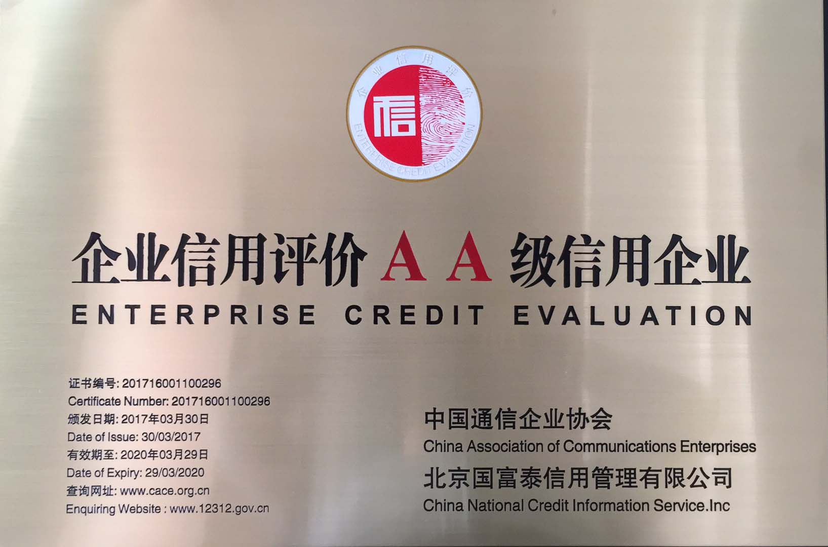 企業(yè)信用評價(jià)AA級信用企業(yè)